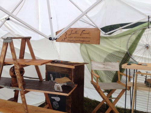The heavy rain made the clay field so muddy, pickup trucks were getting stuck. Should I stay or go? I couldn’t drive my car to my tent to pack-up; so, being continuously optimistic, I thought I’d stay to see if the weather was better on Sunday. Realism would have been more helpful than optimism in this situation. I packed up my jewelry and left to camp for the night (well, that was the plan). As I exited, trying my hardest find the path with the least amount of muddy ruts, I managed to get stuck. Having seen plenty of stuck vehicles in my life, I knew not to spin too much and burry myself deeper. I swallowed my pride (at this point I was in the middle of a field where my struggle were very public) and trekked up the hill to get some advice from the tow truck crew. They were really helpful with how to proceed and offered to pull me out if it didn’t work. I put it in reverse and gave it a lot of gas. Heading up the hill, I did not let of he gas until I made it to the road. Not fun.